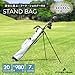 • 【メリット】軽量で持ち運びが楽、安定性が高い足設計、撥水生地で悪天候に強い、クラブを保護する仕切り付き