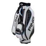 シンプルながらボール2個に加え、フォークやマーカーが入るゆとりある収納スペースを備え、サイドにはティーを差し込める専用のベルトが付いています。