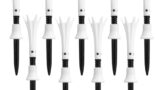 5本セットで提供され、白いスパインデザインが視認性を高め、ティーアップ時にボールとティーの位置関係を明確にします。