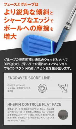 芝の上でのラフ打ちやグリーン周りでのショートアプローチ、ピッチショットに適しており、難しいスピンコントロールも狙えます。