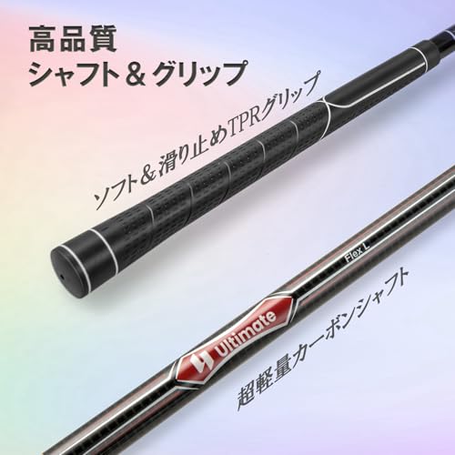 高品質なグラファイトシャフト採用により、軽さとしなやかさがスイングを助け、滑り止めグリップで安心して握れます。