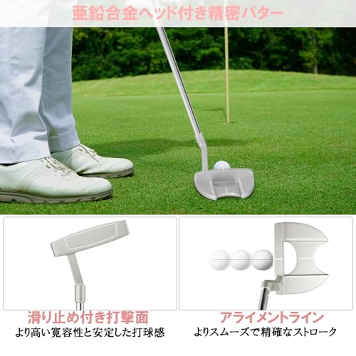 - パターは滑り止めとアライメントライン搭載で初心者でもストロークが安定しやすい作りです。