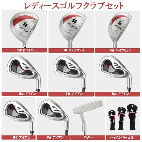 このセットは、ドライバーからパターまでのクラブが揃っており、ヘッドカバー付きで保護もしっかりしています。