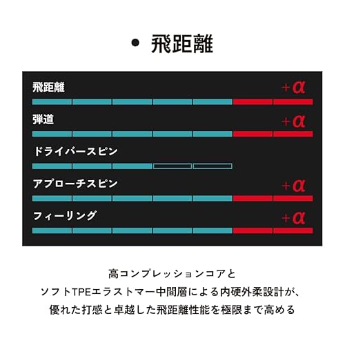 高コンプレッションコアと軟らかな外層の組み合わせで、飛距離が落ち込むことなく快適な打感を実現している点は、多くのゴルファーから高い評価を得ています。