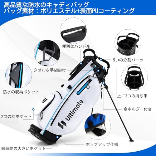 キャディバッグは防水かつ軽量で高さ約126cmと扱いやすく、移動時の快適さも評価されています。