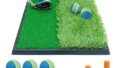 - 【メリット】室内外で場所を選ばず利用可能、リアルな芝感触で本物に近い練習ができる、ティー穴付きで多彩なショット練習が可能